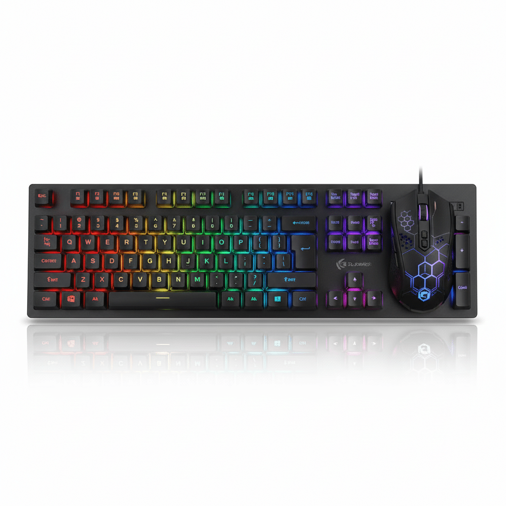 El Marvo KM409 Gaming Combo es un paquete de inicio diseñado para jugadores, que generalmente incluye un teclado de membrana con iluminación Rainbow o RGB para un look visual atractivo, junto con un ratón óptico gaming con sensibilidad DPI ajustable. Este kit plug-and-play busca ofrecer un rendimiento mejorado respecto a los periféricos estándar, presentando un diseño ergonómico y materiales duraderos, a menudo complementado con un auricular gaming y un mousepad en el mismo paquete, proporcionando una solución completa y económica para comenzar a jugar.